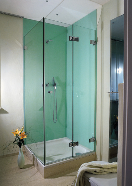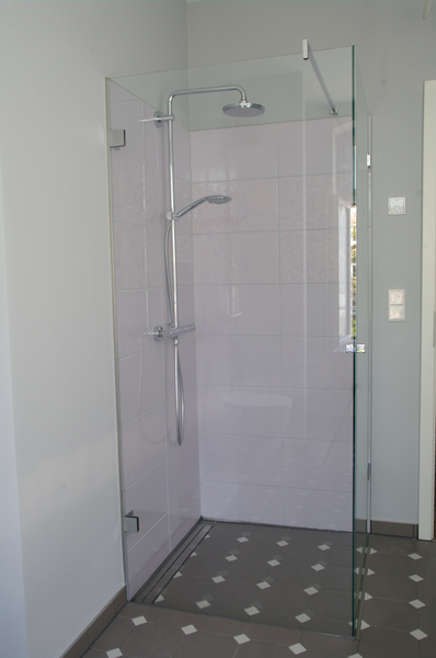 Wir bieten rahmenlose Duschen aus 8 mm starkem Einscheibensicherheitsglas und mit Markenbeschlägen deutscher Hersteller wie