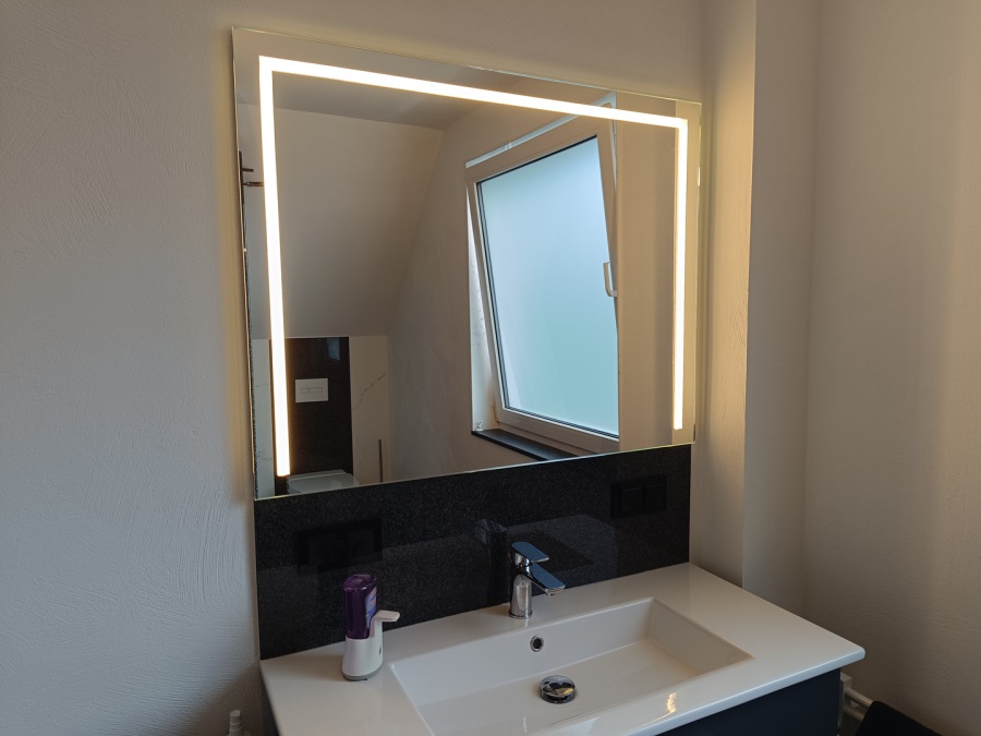 Antibeschlagspiegel: Rückseitig mit Heizfoliensegment, zur Vermeidung von Spiegelbeschlag